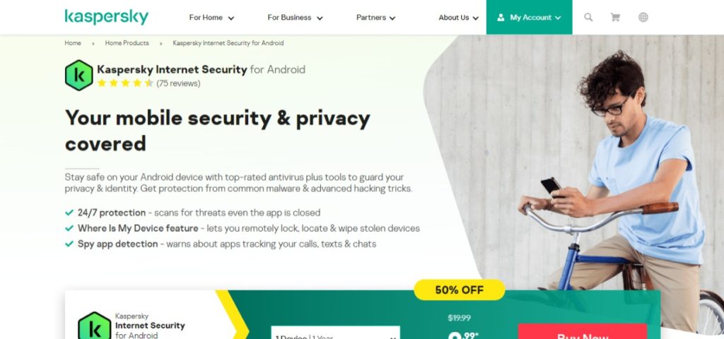 Kaspersky Mobile Security is a good Android antivirus app for malware detection and removal with up to 99.9%, according to the AV-Test. The antivirus app is the best malware protection app for Android, which also offers lots of features for both free and paid versions. Their premium version comes with more advanced features, and the free plan comes with most features that are available on the premium on other antivirus apps.