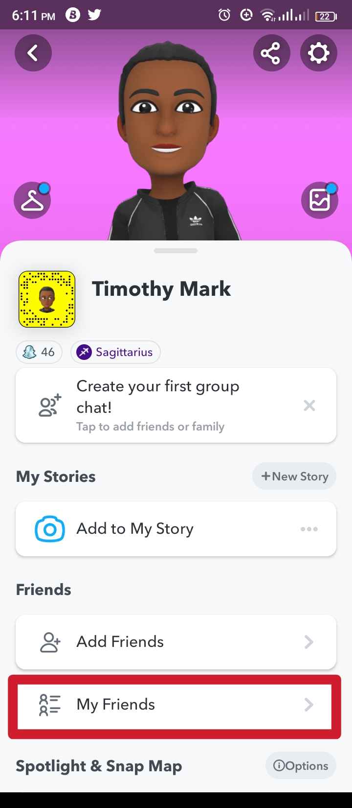 If they’re not there in the Chat section, tap on your Bitmoji at the top left corner, then tap on My Friends.