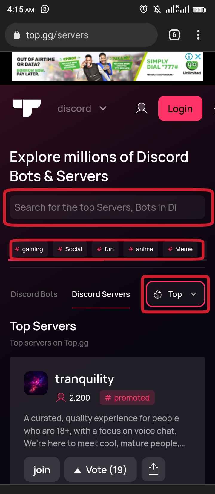To join Servers on Discord using Top.gg website, open your web browser on your computer or mobile and go to top.gg.